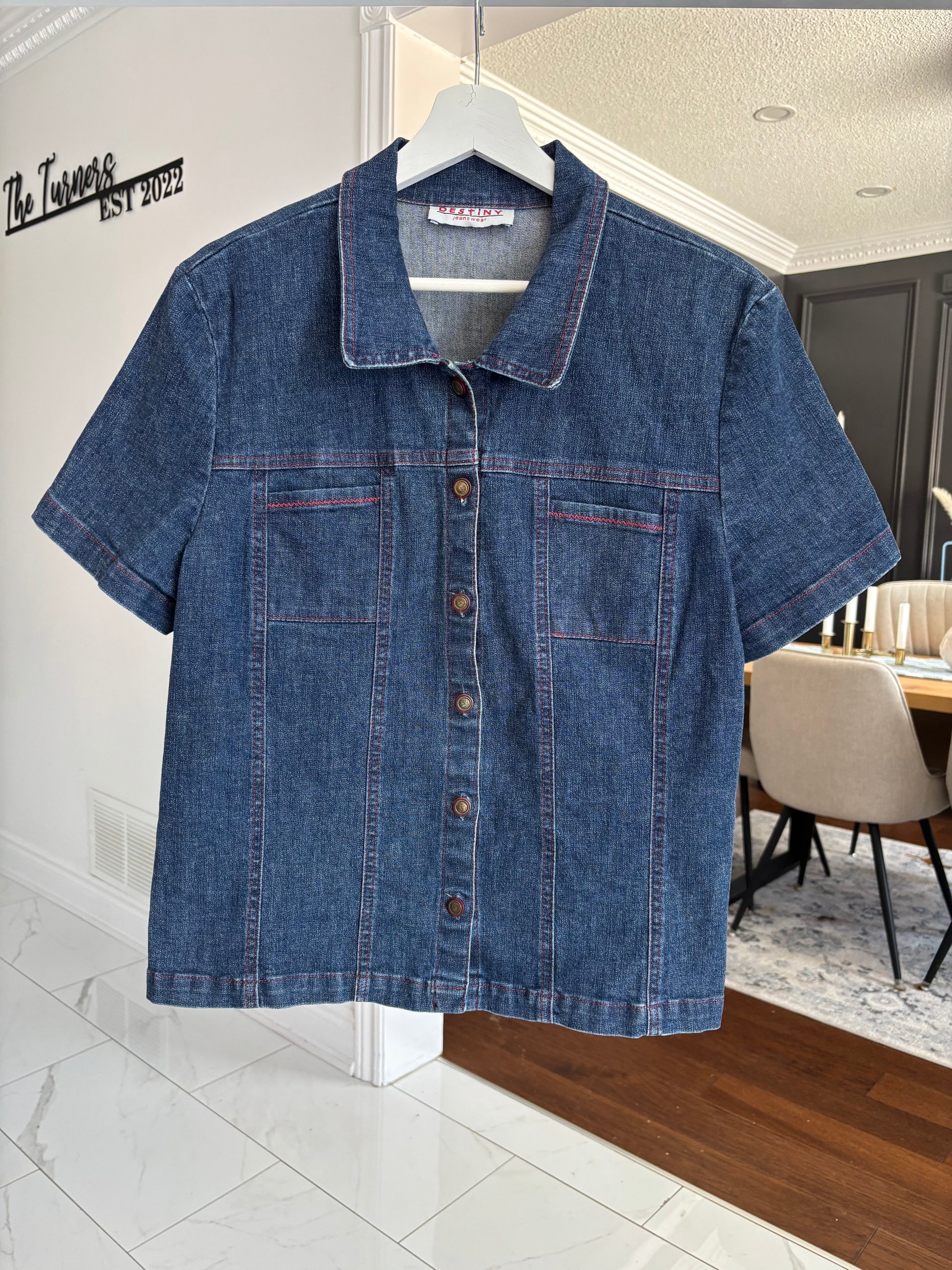 Short Sleeve Denim Shirt Size L